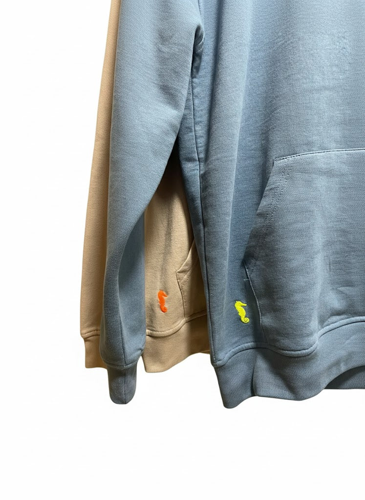 Parte delantera caballito de mar cosido junto bolsillo canguro, en parte inferior